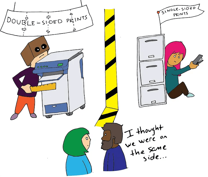Task conflict is a disagreement over the goal or objective of something, be it a project, a discussion, meeting, etc. At the organizational level, this might manifest in two departments wanting different things from a client situation. At the team level, this could be a lack of alignment on a project’s desired outcome. As a manager, I’ve found it helpful to always circle back to the objective, to clarify and realign, to avoid task conflict from creeping in.
